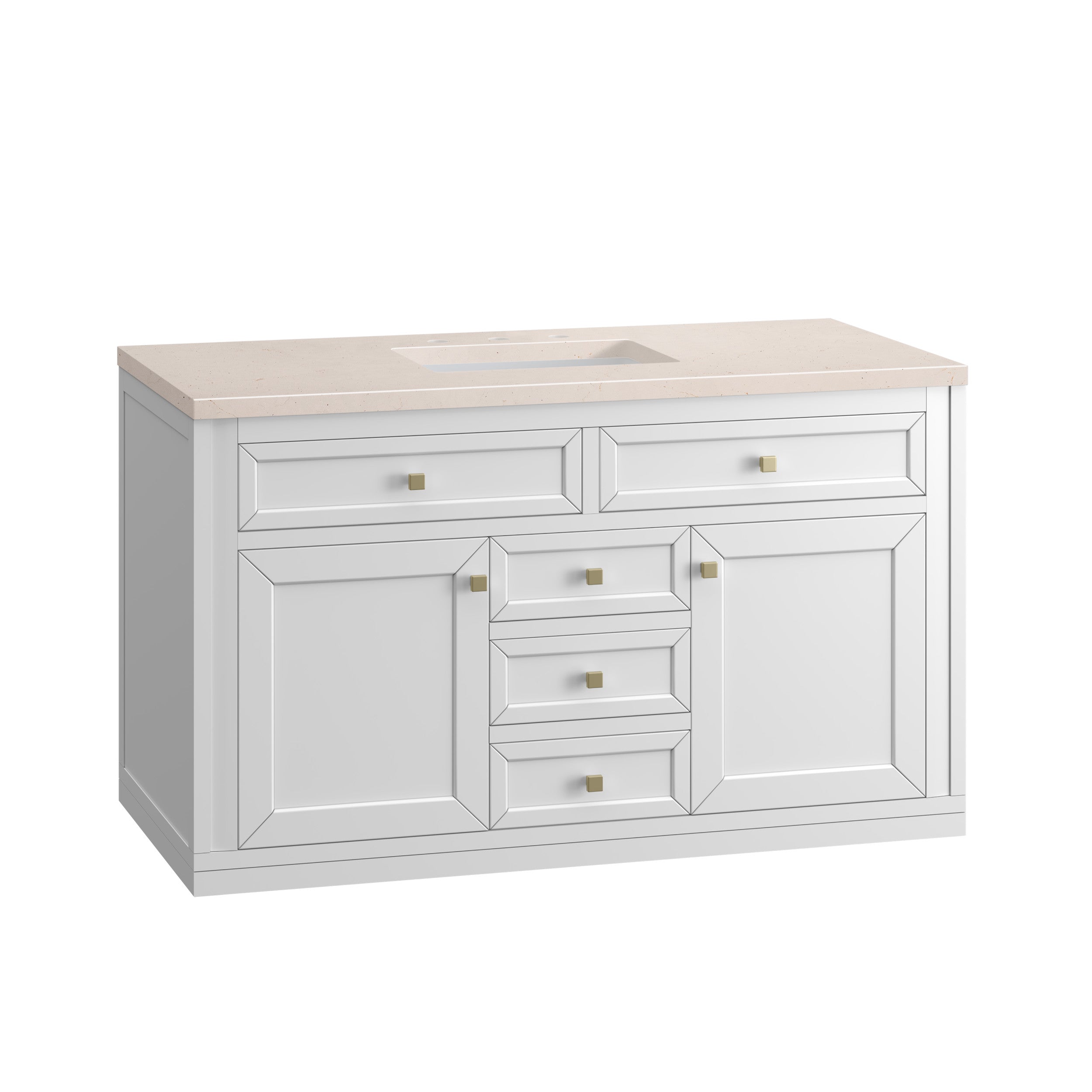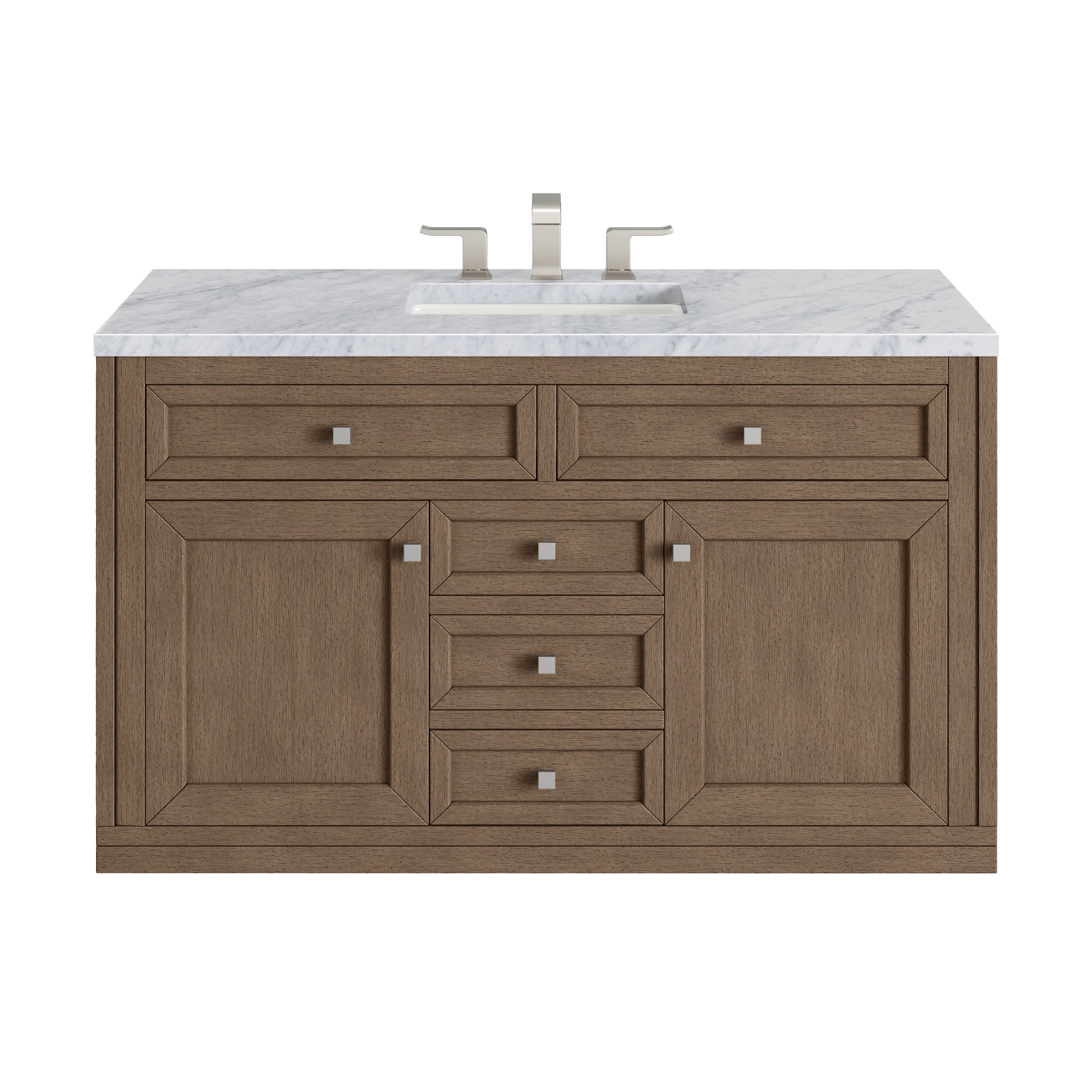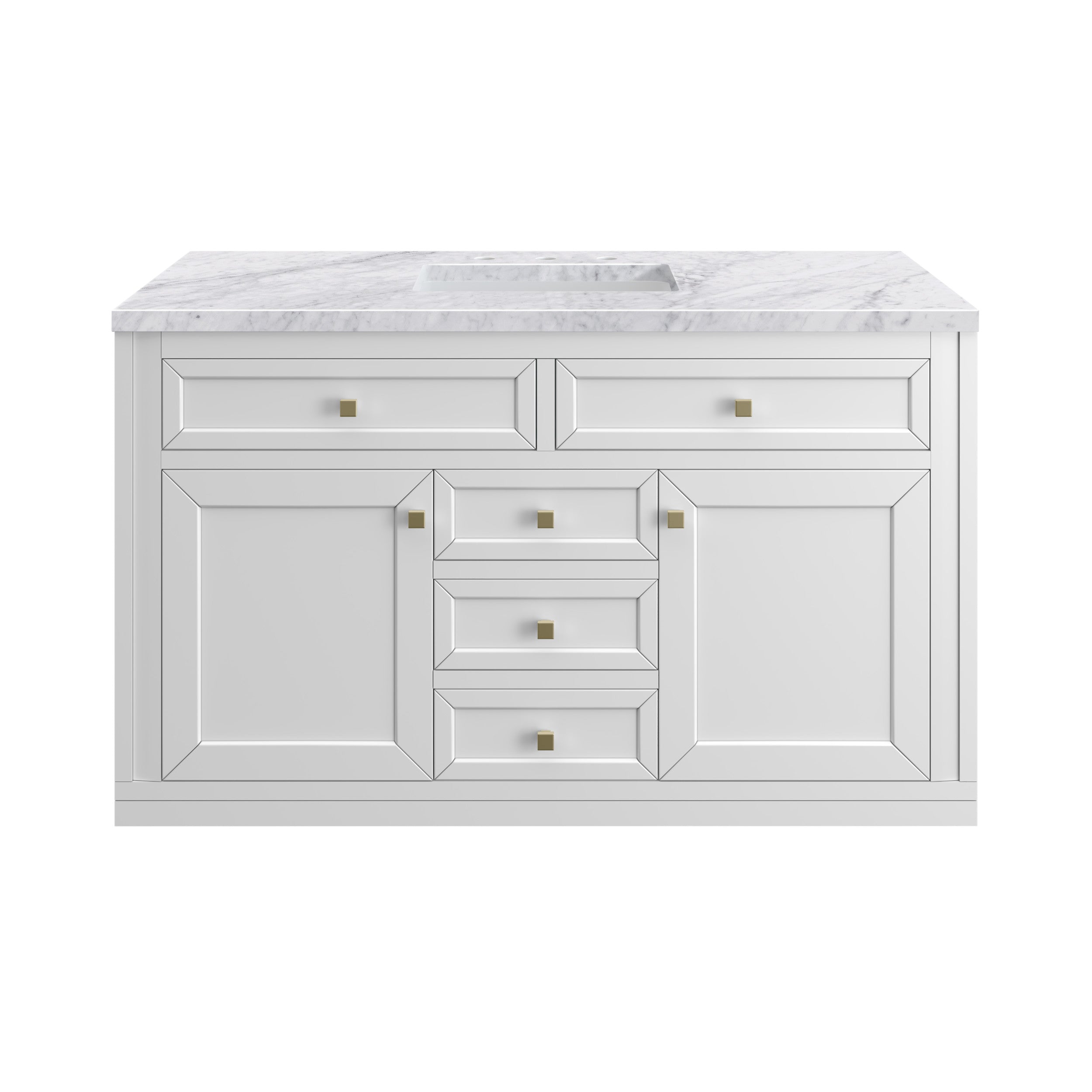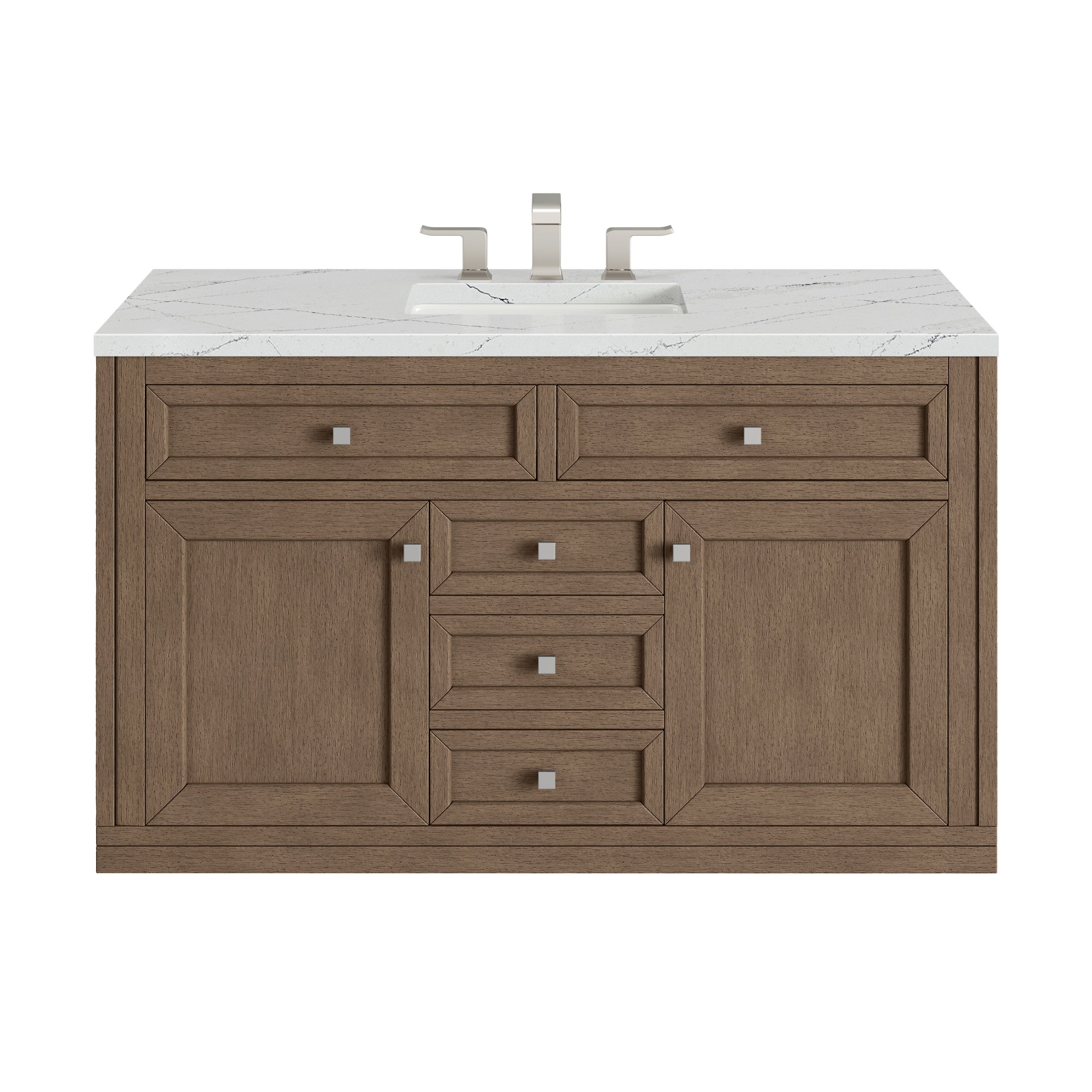 The cathedral grain White Oak veneers and modern panel detailing on the doors and return panels give the Hudson collection the look of fine furnishings that is unexpected yet welcome for the bathroom space. The 60" Hudson Double Vanity features three generous drawers and one removable bamboo storage organizer tray, allowing for optimum organization. The right side door opens to reveal a convenient dual-power USB outlet while the left door conceals an additional drawer. The 3 CM Arctic Fall Solid Surface top provides the perfect final touch.