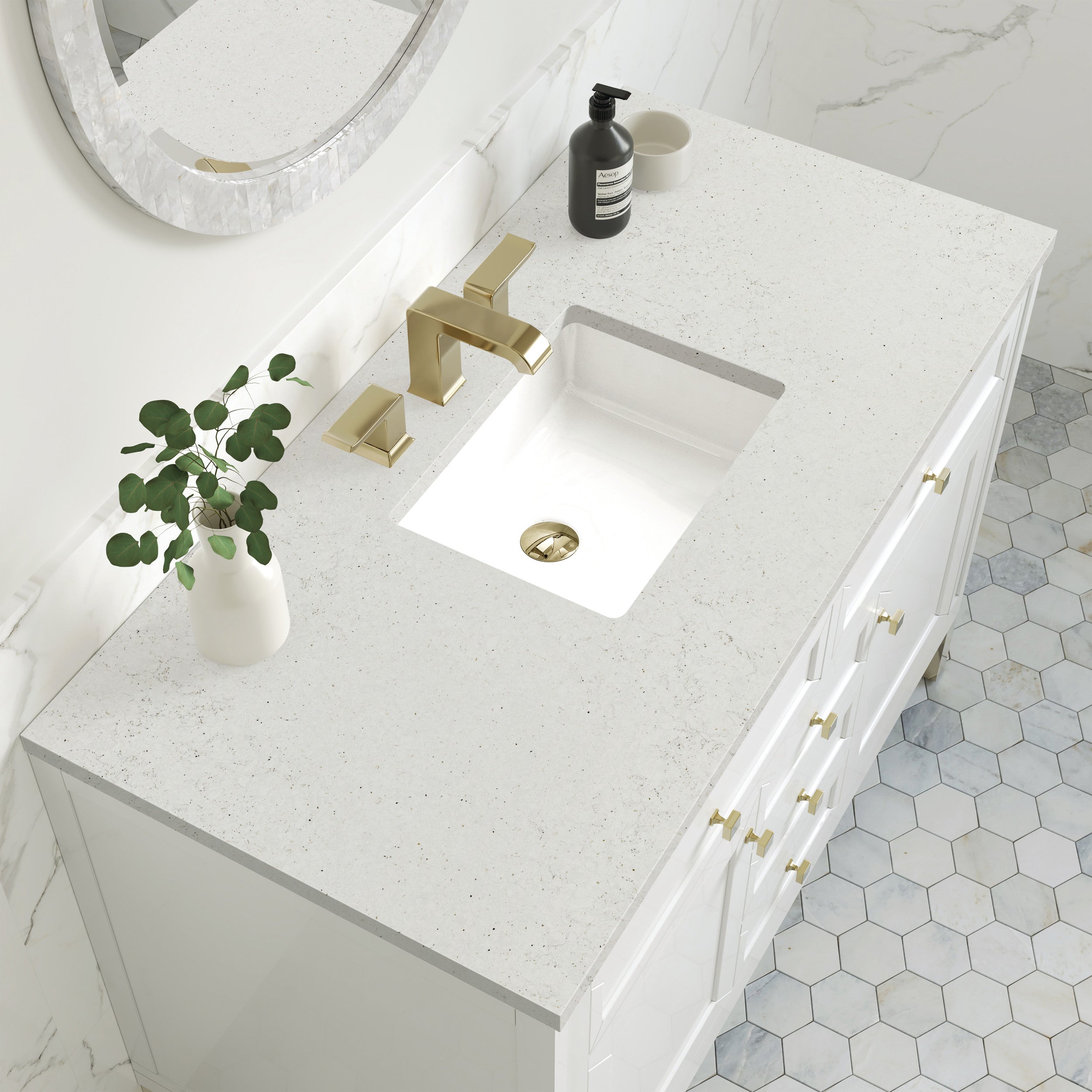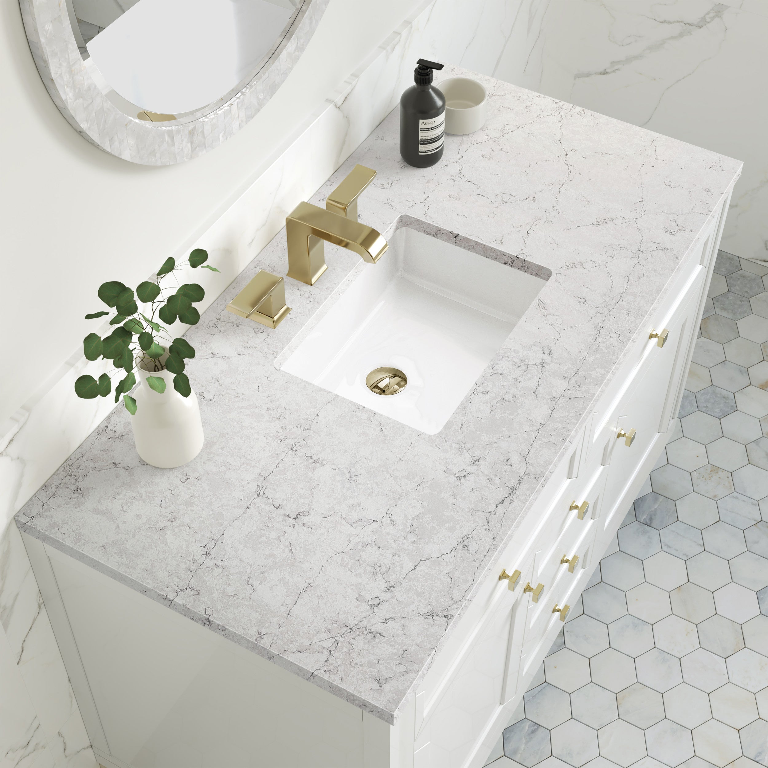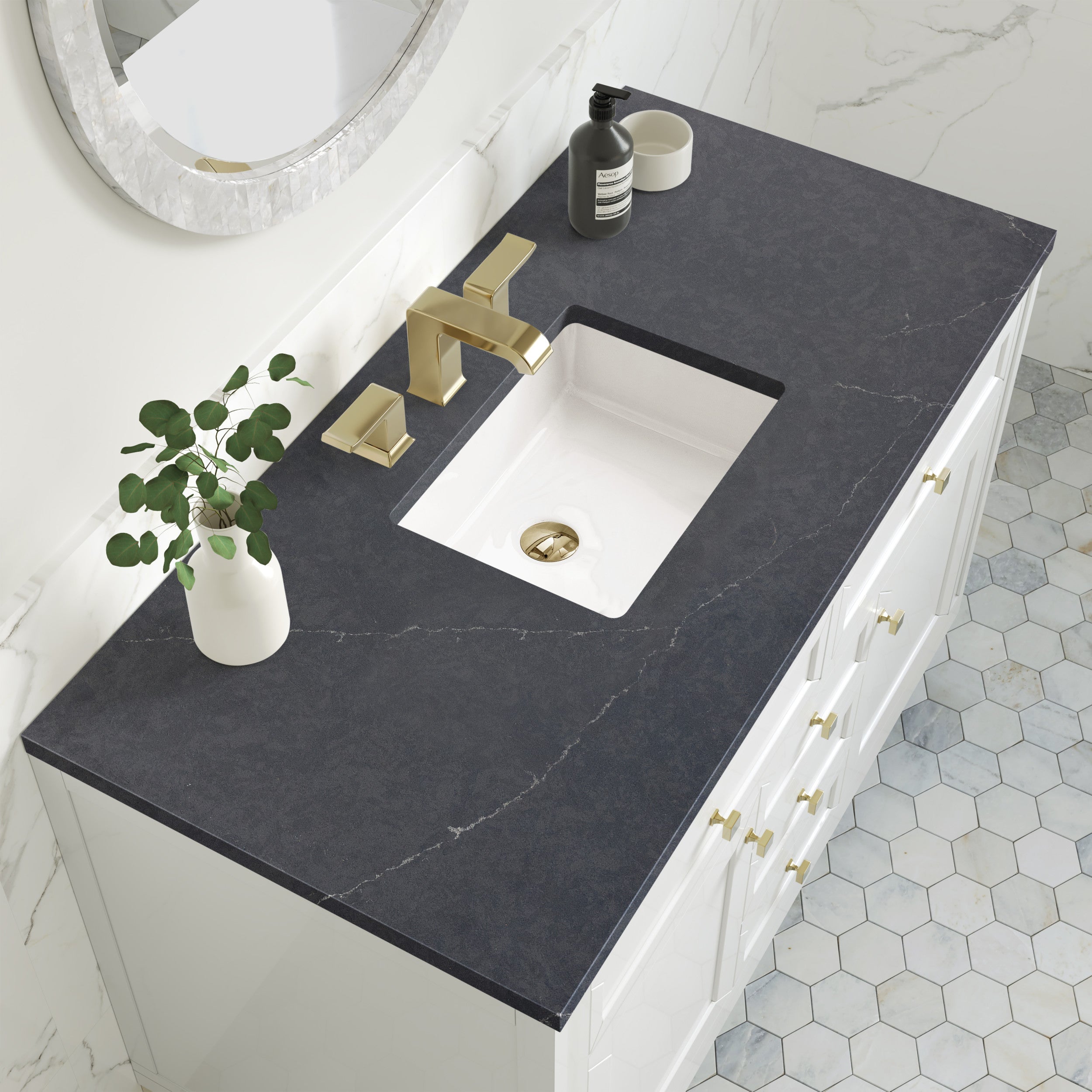 - 3 CM eased edge Arctic Fall, solid surface top includes a white porcelain rectangular sink that ships separately and includes mounting brackets for easy installation. Faucet not included.