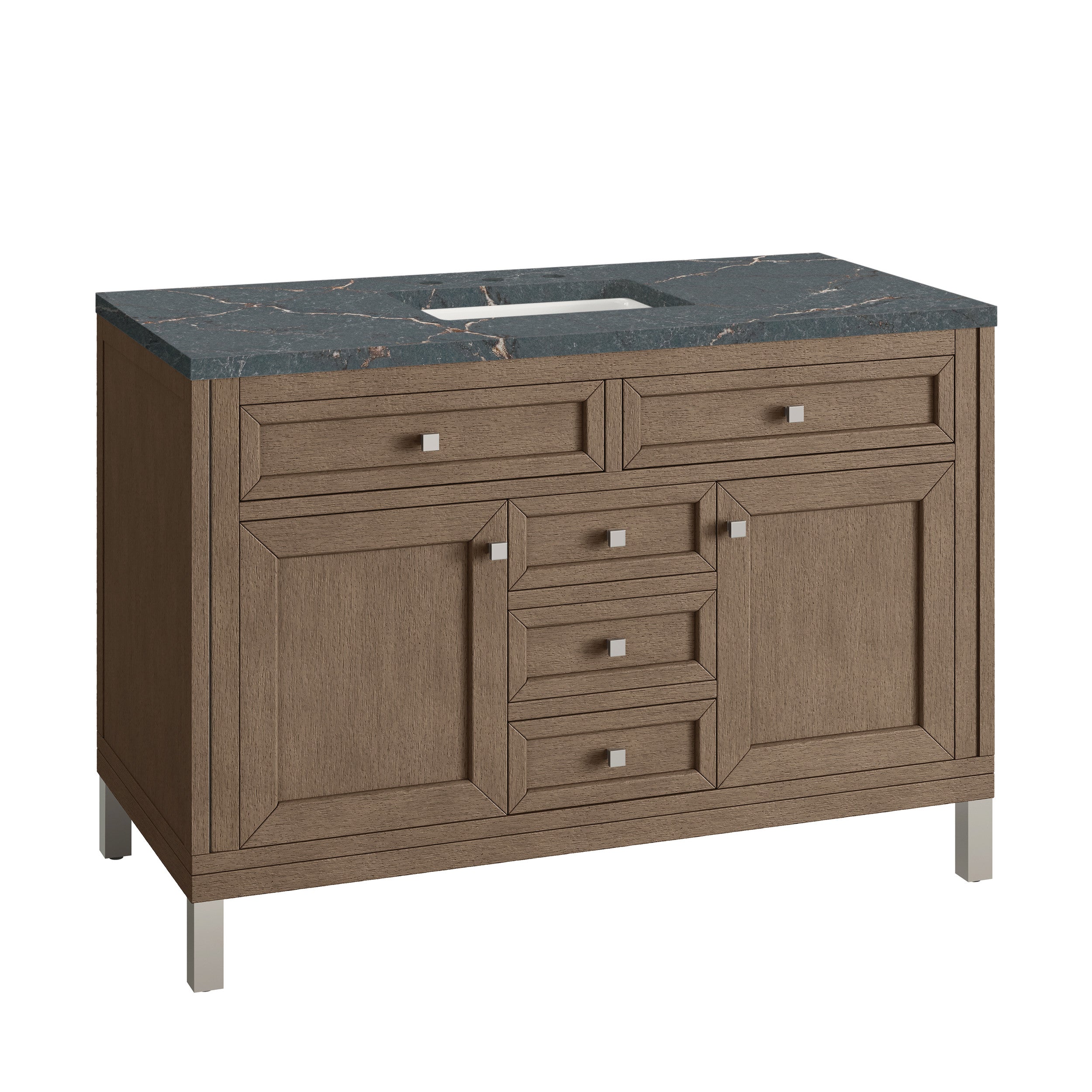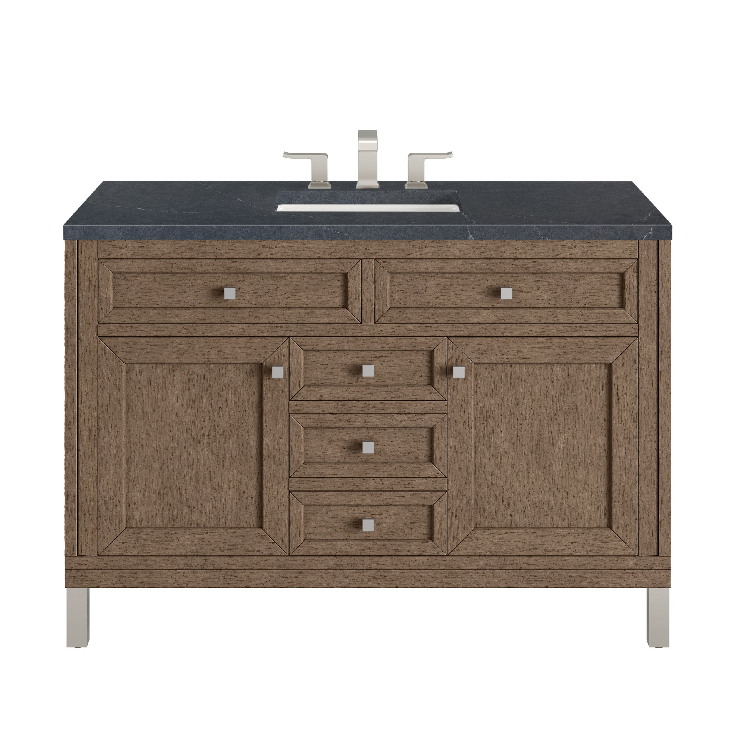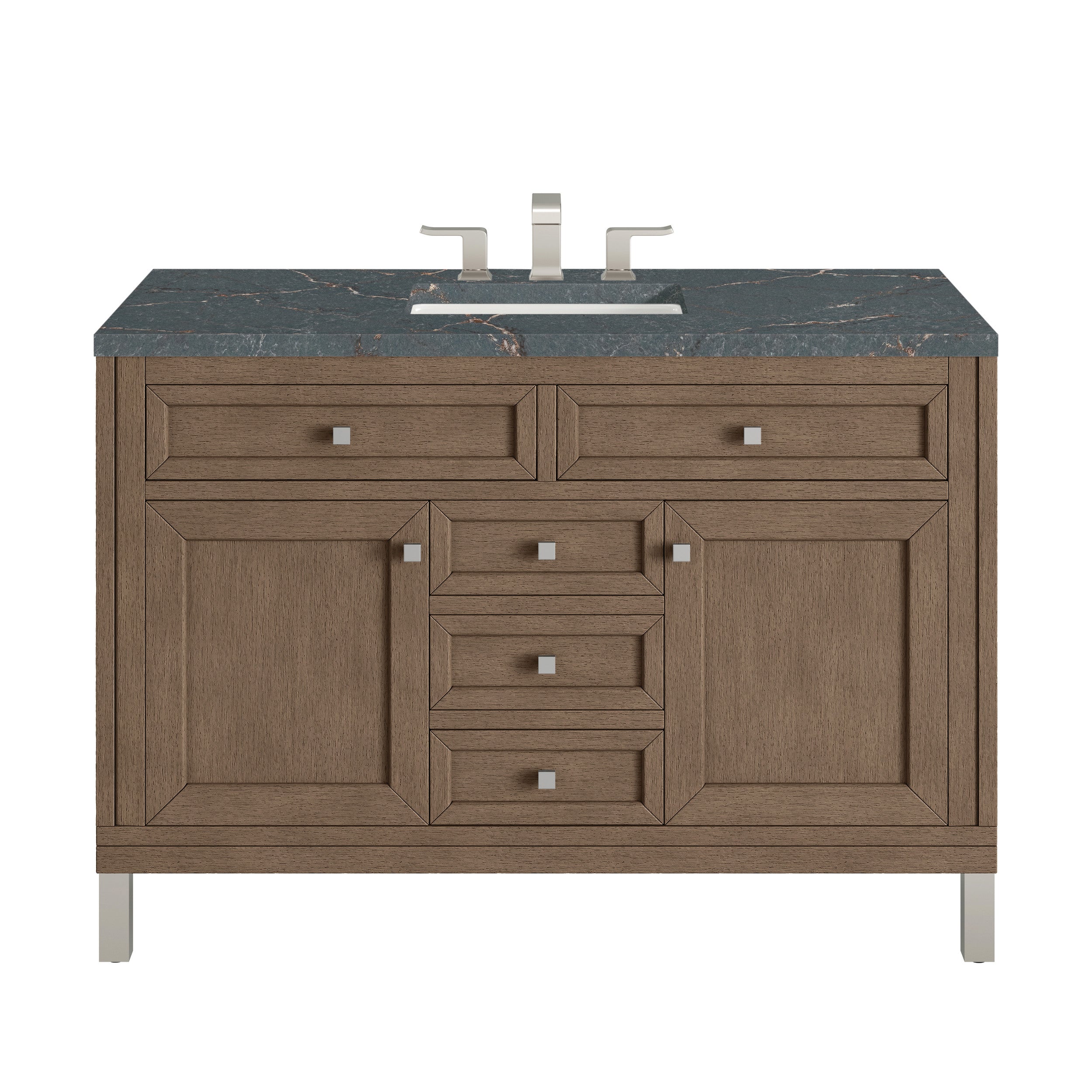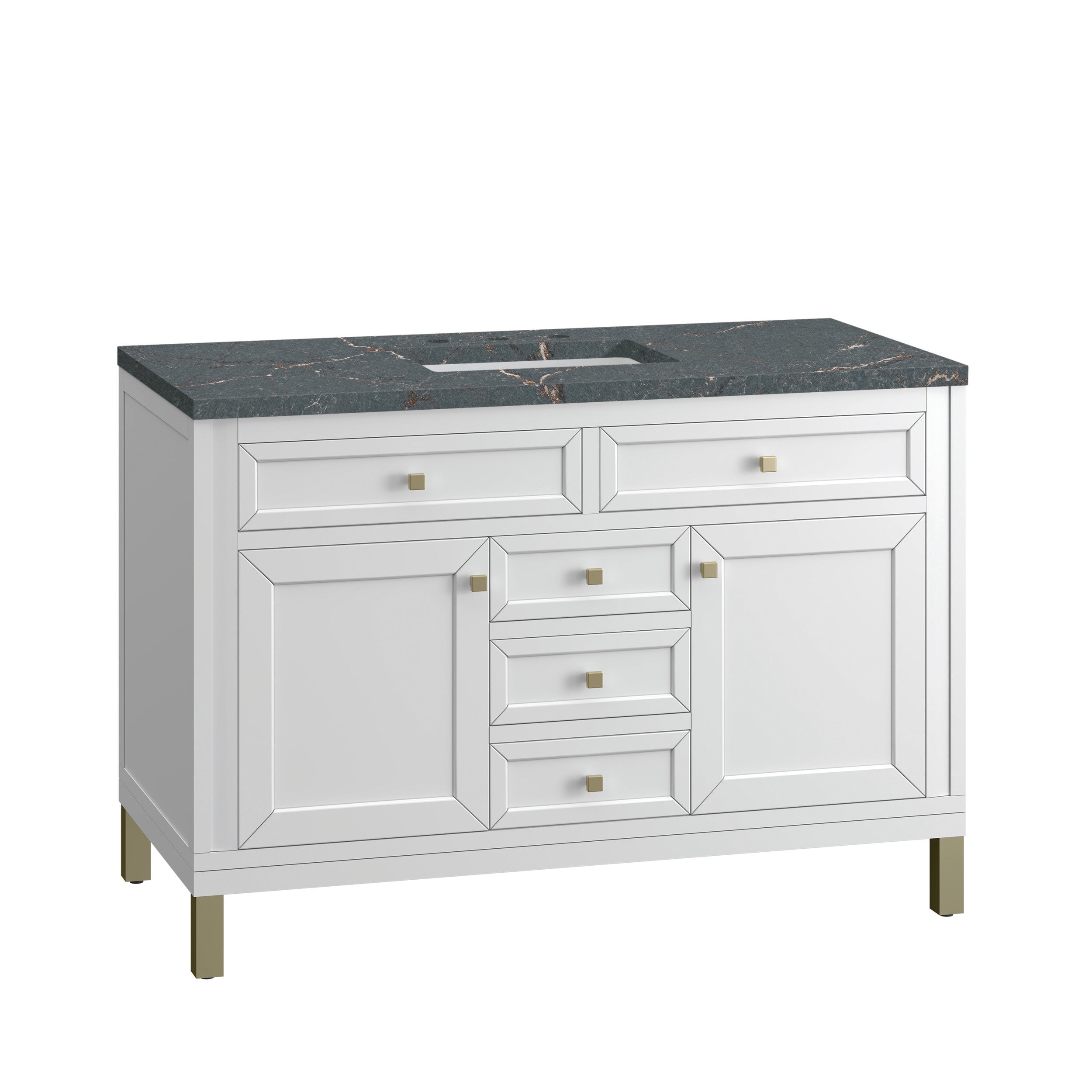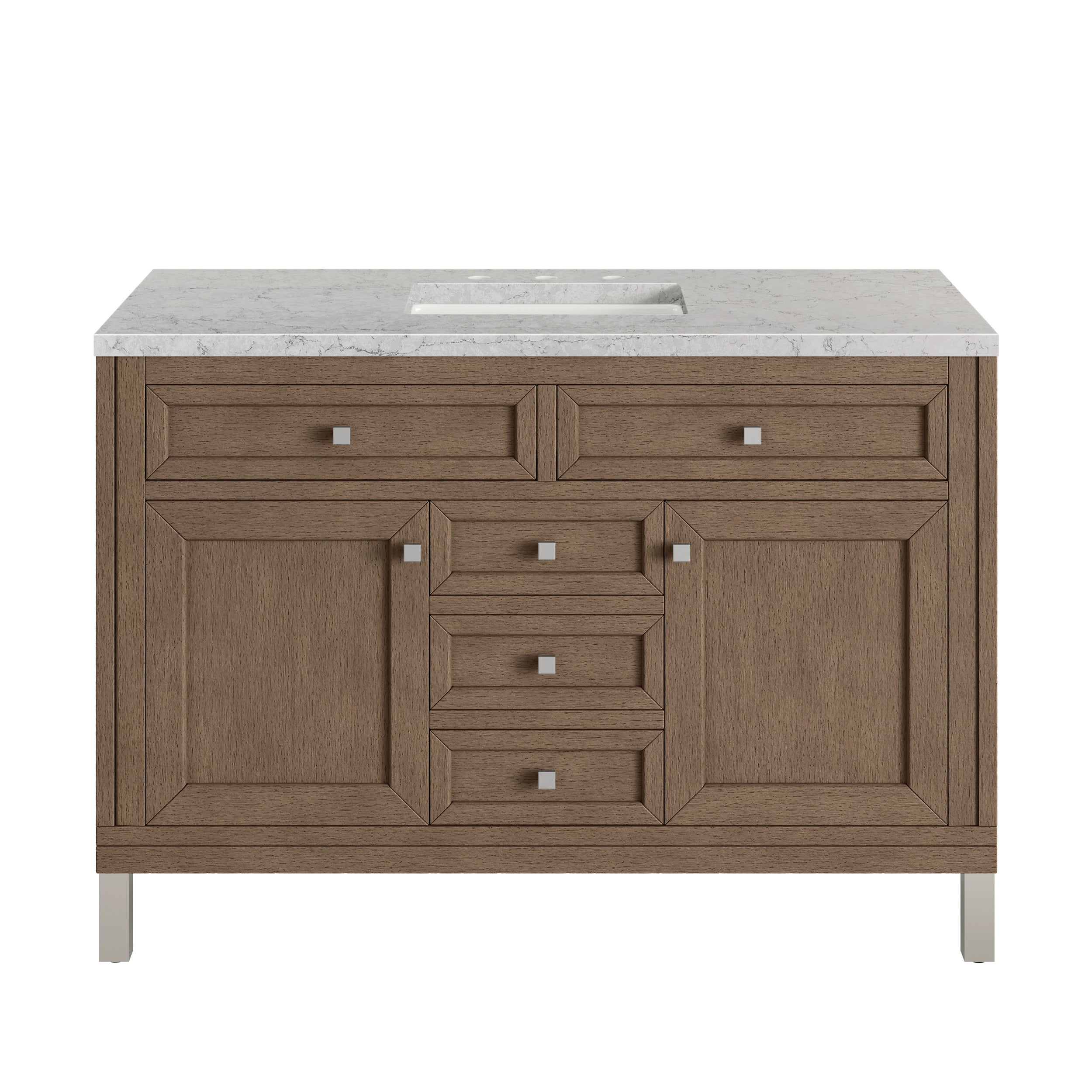 A sophisticated pairing of Mid-Century modern and Farmhouse styles, the Hudson collection stands out with a sleek paneled design. The cathedral woodgrain is accented with Champagne Brass knobs. Housing ample storage, this collection perfectly balances practicality and chic detailing.