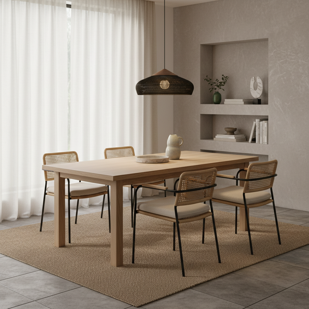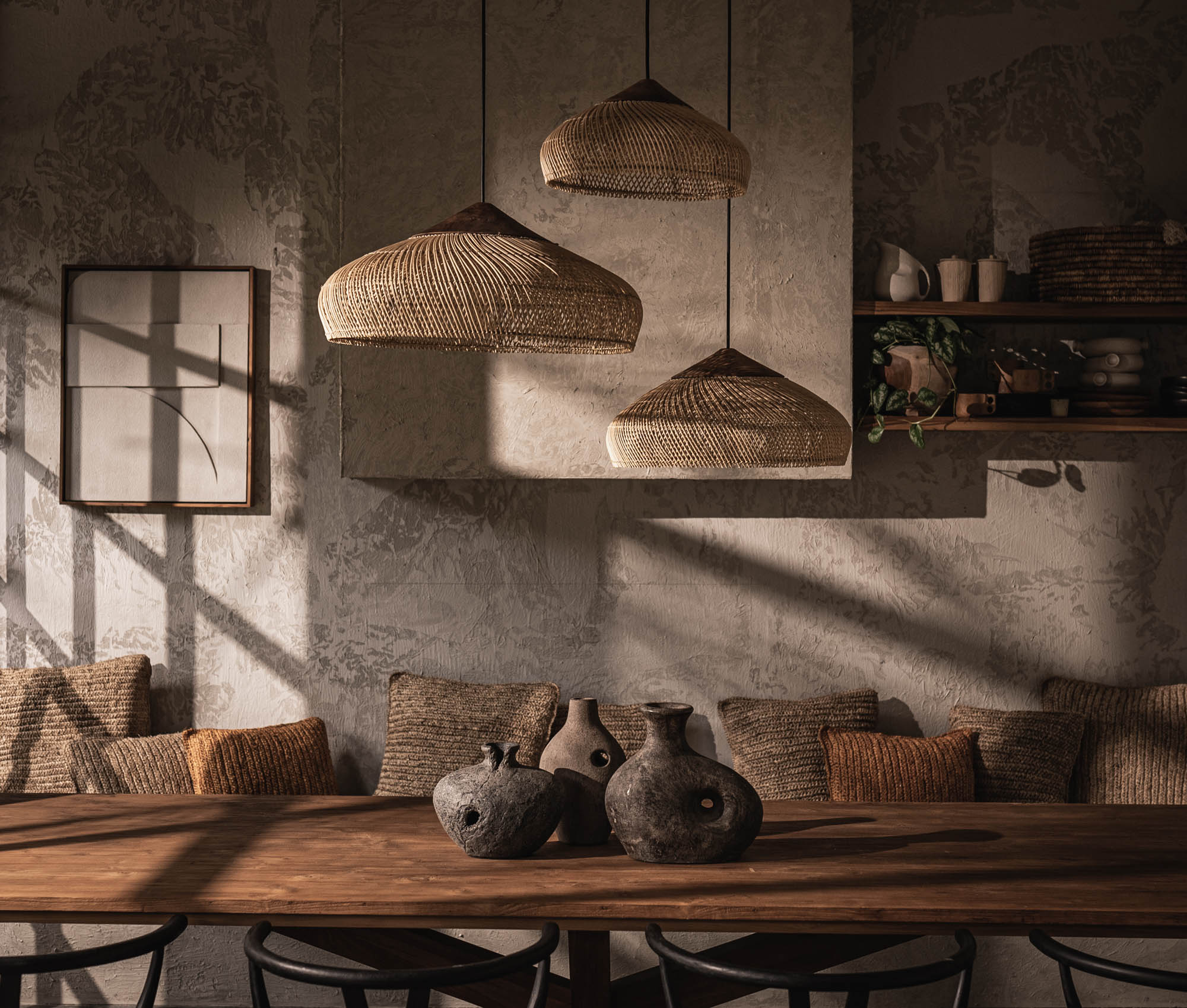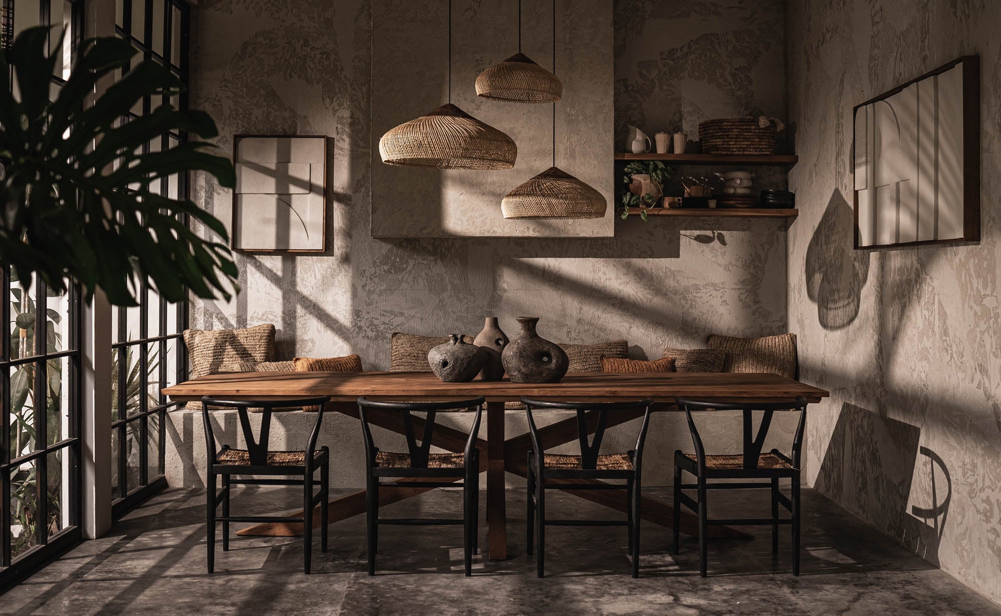 - Materials: Reclaimed Teak Wood, Natural Rattan, Iron