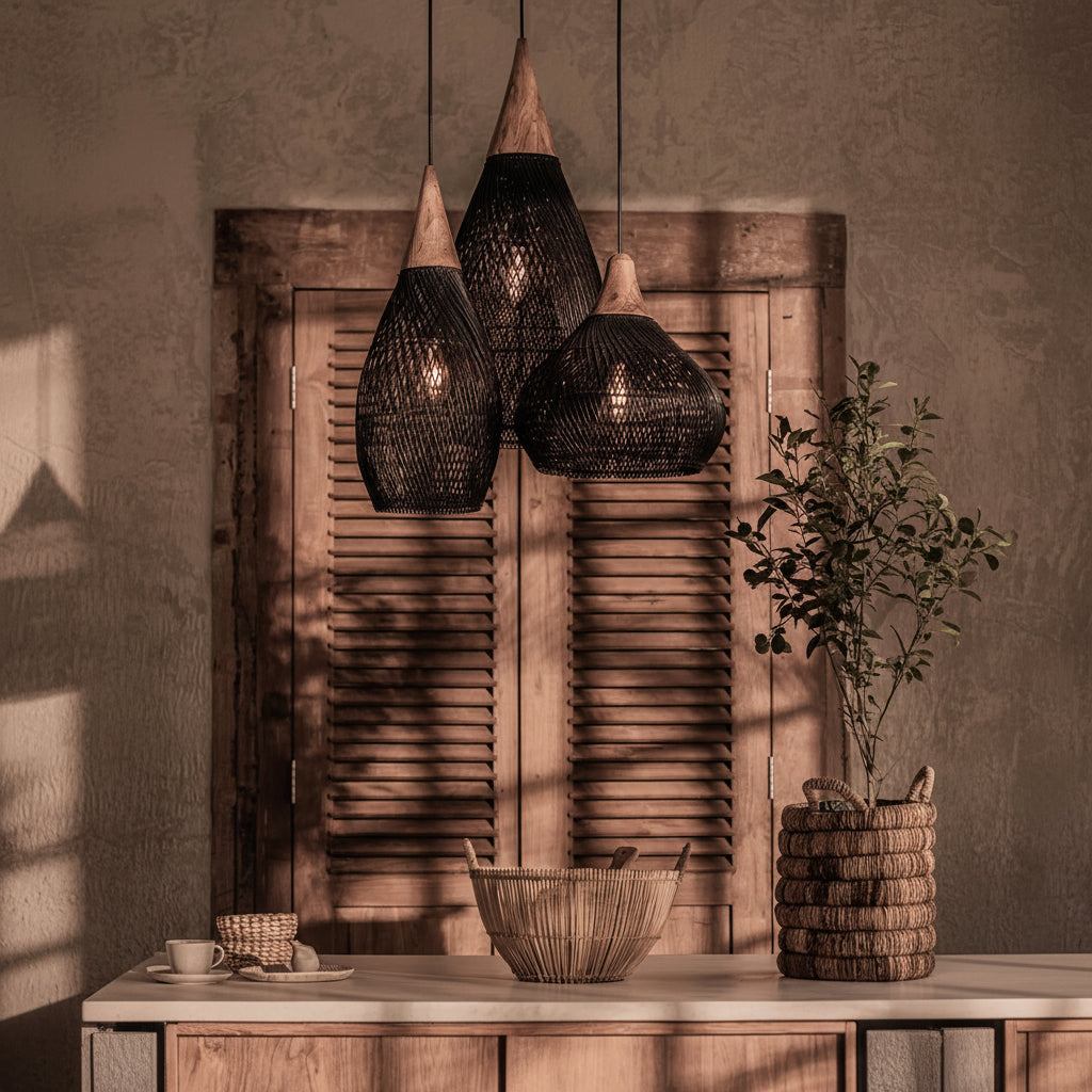 Add a splash of coastal flair to your home with this naturally stylish pendant lamp. It features a teak top and a handwoven rattan body, both crafted with traditional Javanese technique. While being ideal for small living spaces, it can also be combined with other pendant lamps in the series to create a decorative cluster over a dining table.