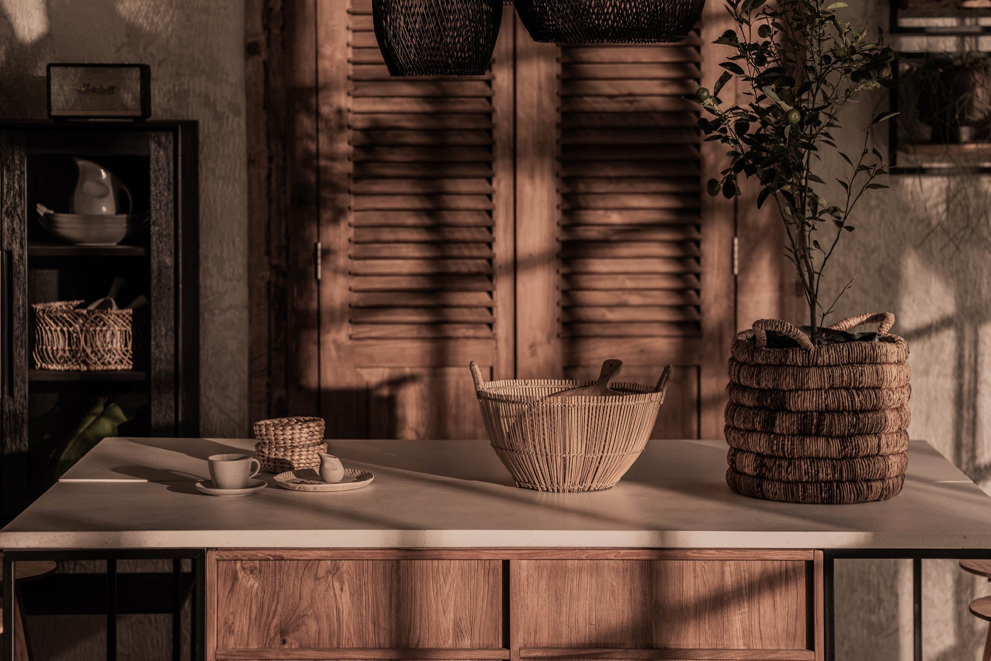 - Materials: Reclaimed Teak Wood, Natural Rattan, Iron