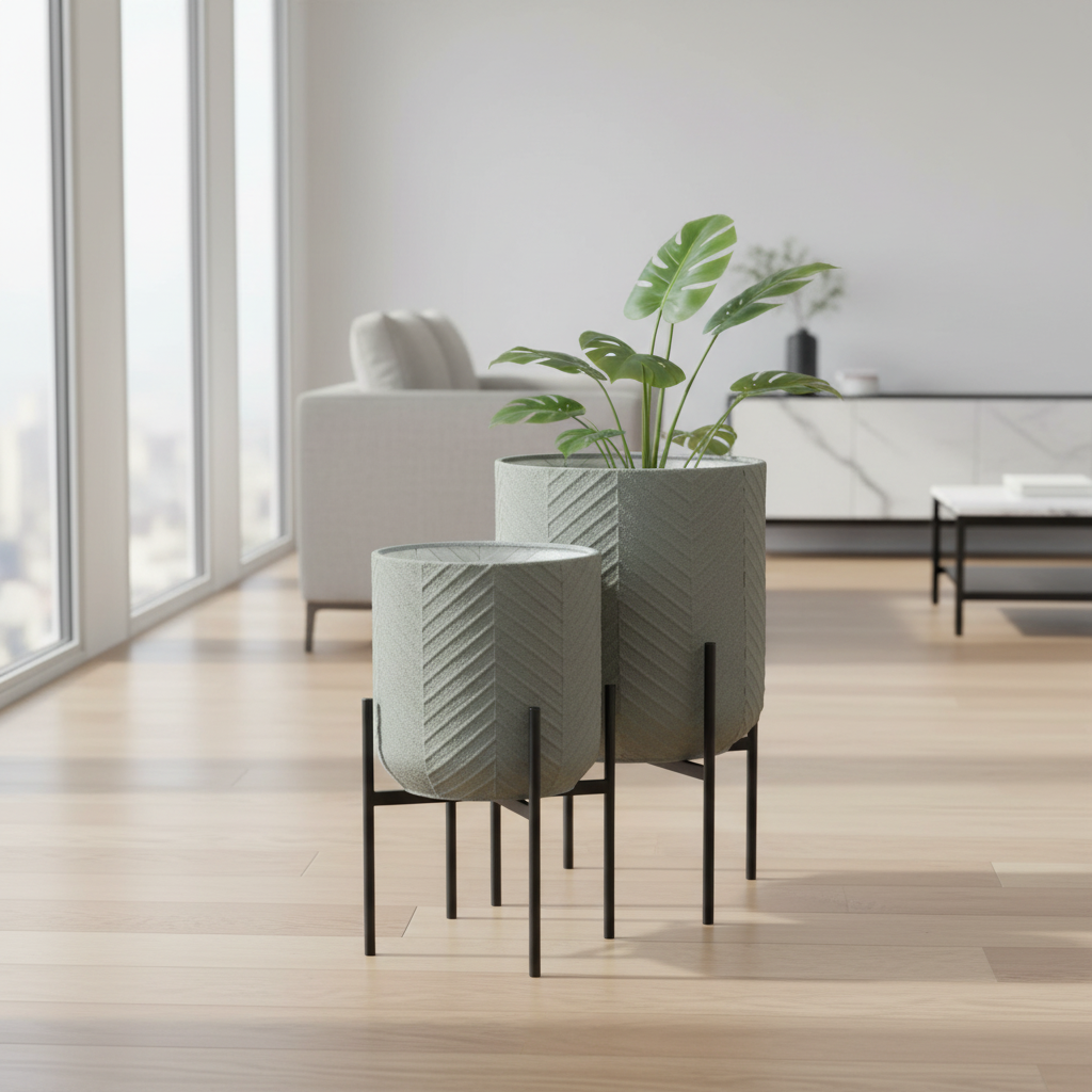 The Mabel is a stunning set of two plant stands. Each piece comprises a gray-colored, metal plant holder with a black metal base. The juxtaposition of colors and materials as seen on the Mable set of plant holders makes it a great addition to spaces based on the Mercana Modern, Coastal and Enduring Elegance design styles.
