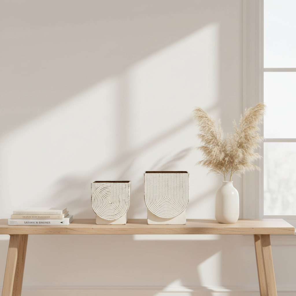 The Medina Planters, consisting of two lightweight metal containers adorned with an attractive rainbow pattern, exhibit a charming aesthetic. Their black painted finish, complemented by antiqued rust-colored distressing, accentuates the metal's texture and lends a gracefully weathered appearance. The interiors of these planters are also adorned with a painted black finish. These versatile planters can house both artificial and live plants, however, they are not water tight. Be sure to pot your plants in watertight containers prior to placing them within the Medina Planters.