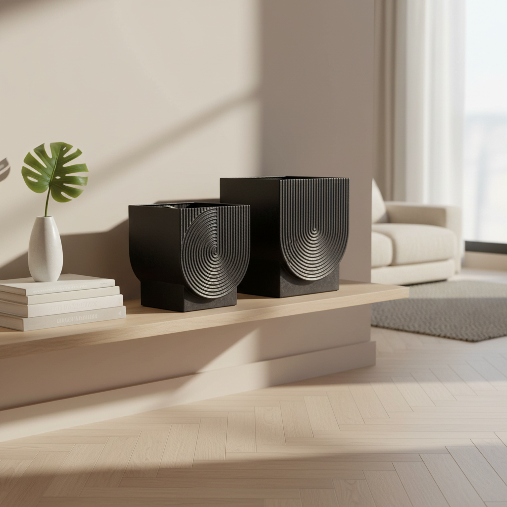 - These planters are made of lightweight metal with a painted black interior.