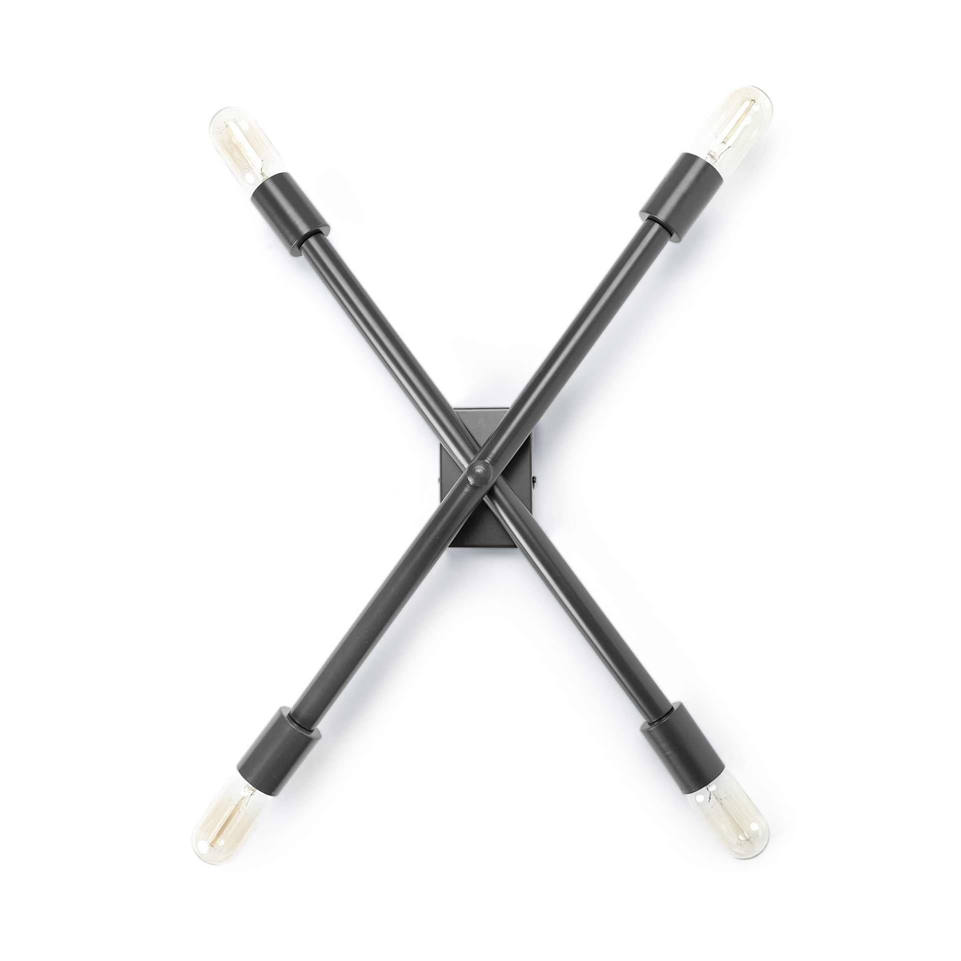 Crafted from metal and finished in a matte-black tone, the Xendi is a stylish wall sconce with a unique design. Inspired by sputnik-style lights, the Xendi features two metallic rods that host chandelier lights at each end, helping you set the perfect mood in your space. The two rods that host the lights are attached to a metallic wall base and can pivot around the fixture, making the lights slightly adjustable. The Xendi requires four 60-Watt rated, E26 standard bulb for operation and looks absolutely gorgeous in spaces based on the Mercana Modern and Industrial design styles.