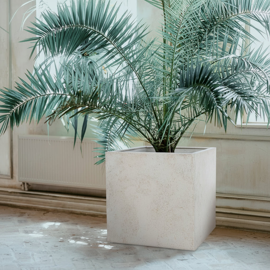 This planter's beige finish allows the warm, welcoming appeal of the tone to pour out into the garden space. Showcasing an 18-inch cube structure, it looks stylish alone or when styled among other elements. Whether holding greens or florals, the piece takes on an entirely new effect with each turn of the seasons.