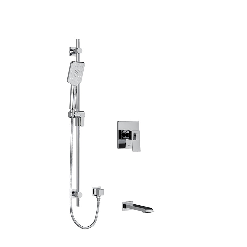 - ½" 2-way Type T/P (thermostatic/pressure balance) coaxial system with spout and hand shower rail