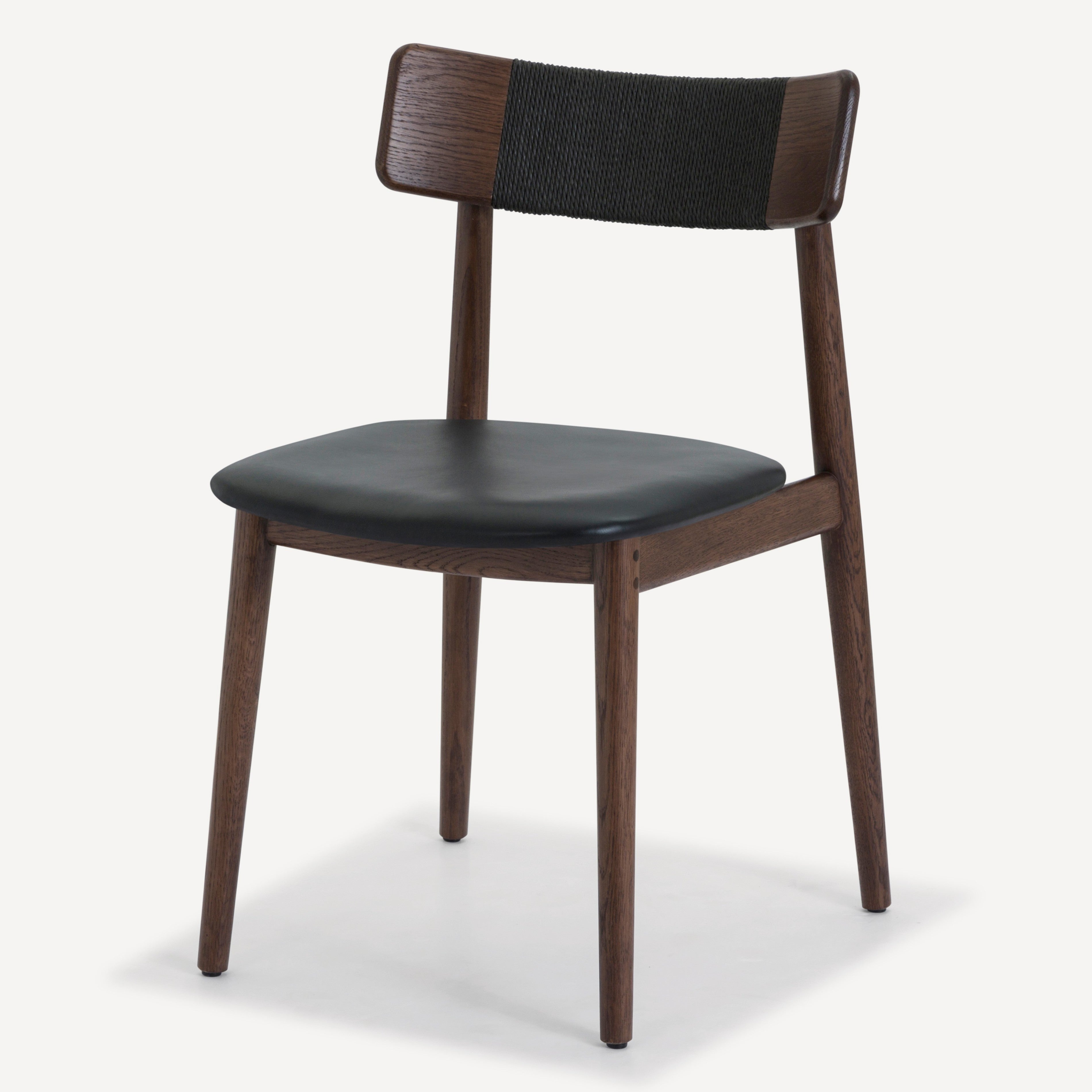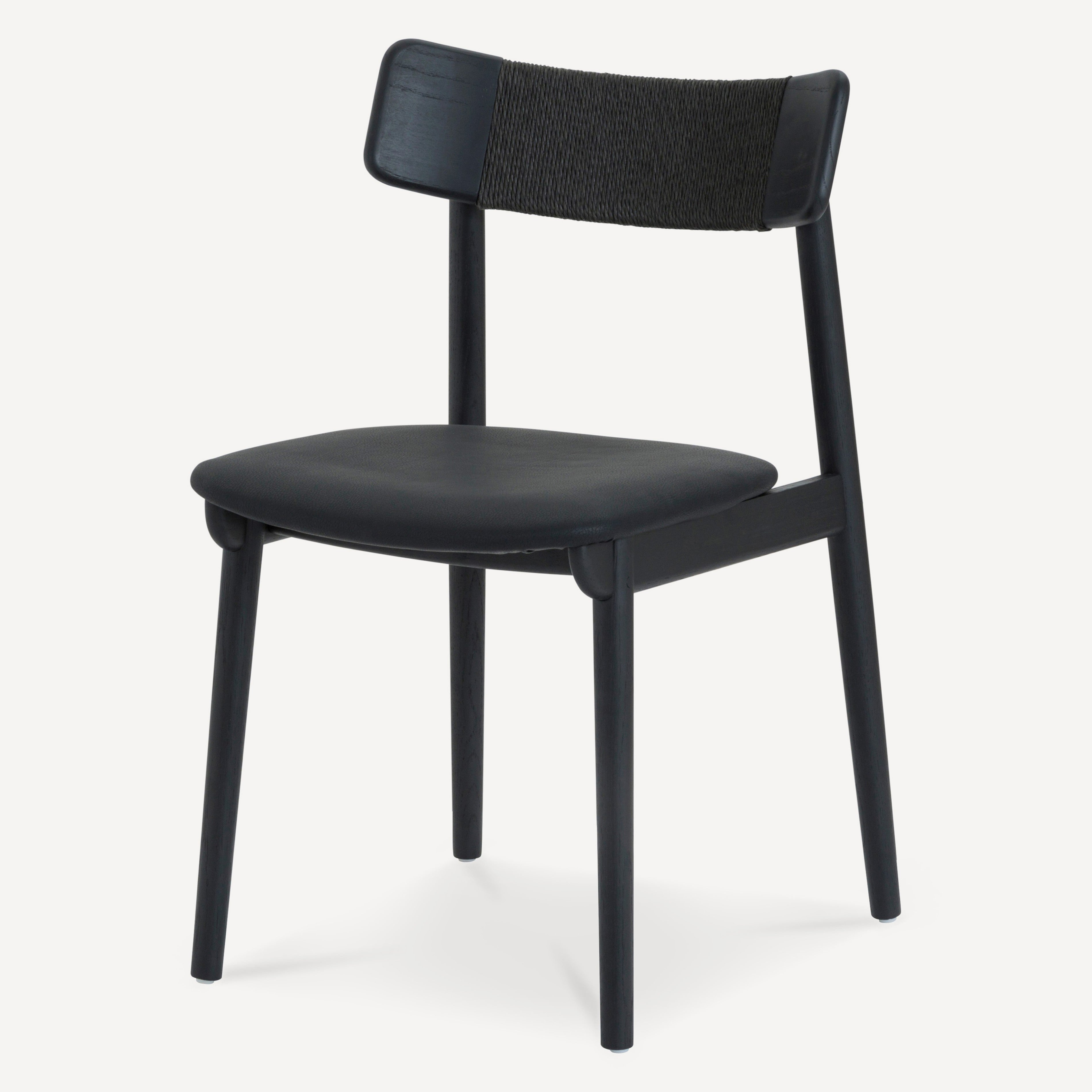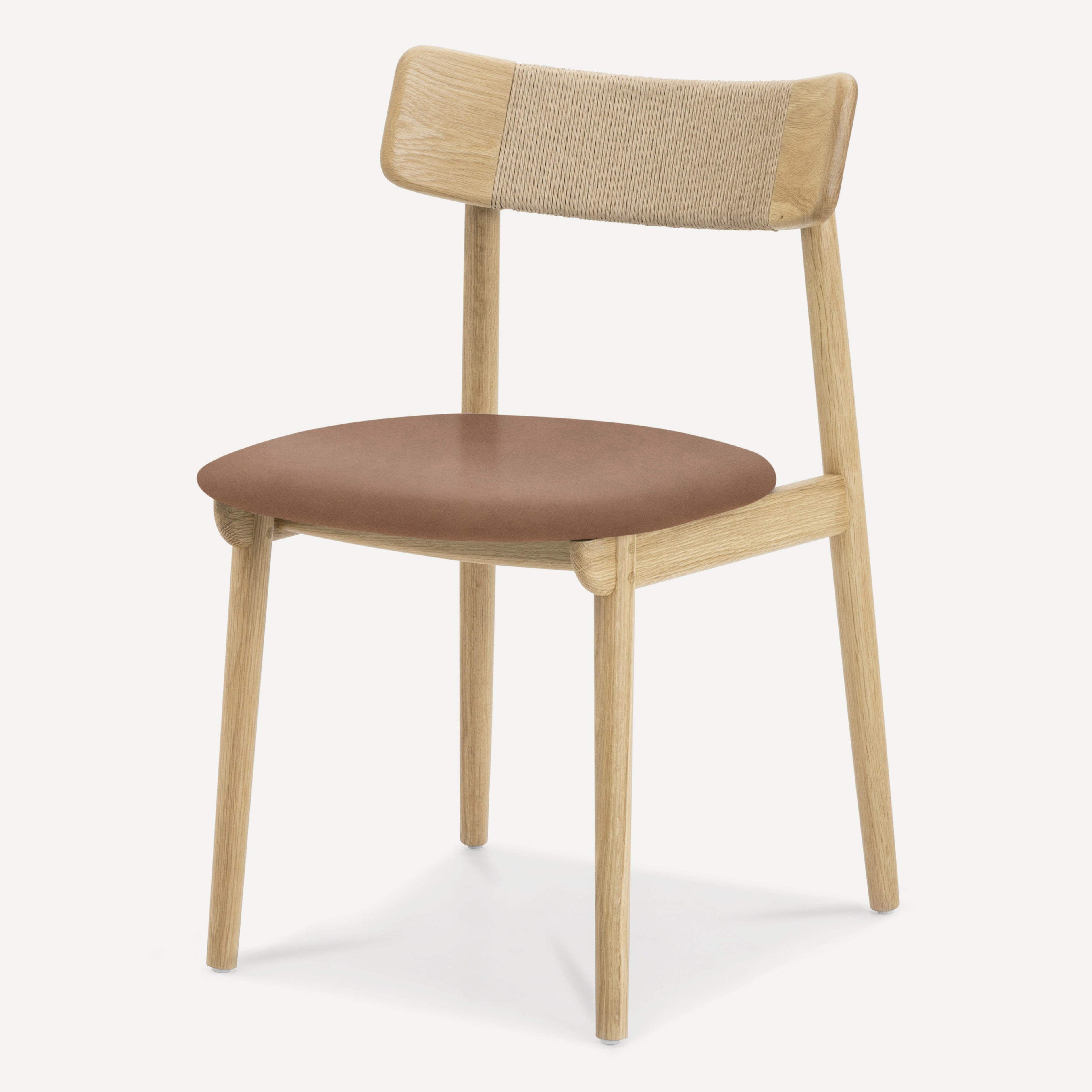 Inspired by the honest expression of material found in Scandinavian design, the Converse chair is at once simple and elegant. This versatile chair features a solid, FSC certified Oak frame that supports an upholstered leather seat. The softly curving back rest is complemented by an intricately woven Danish paper cord detail.