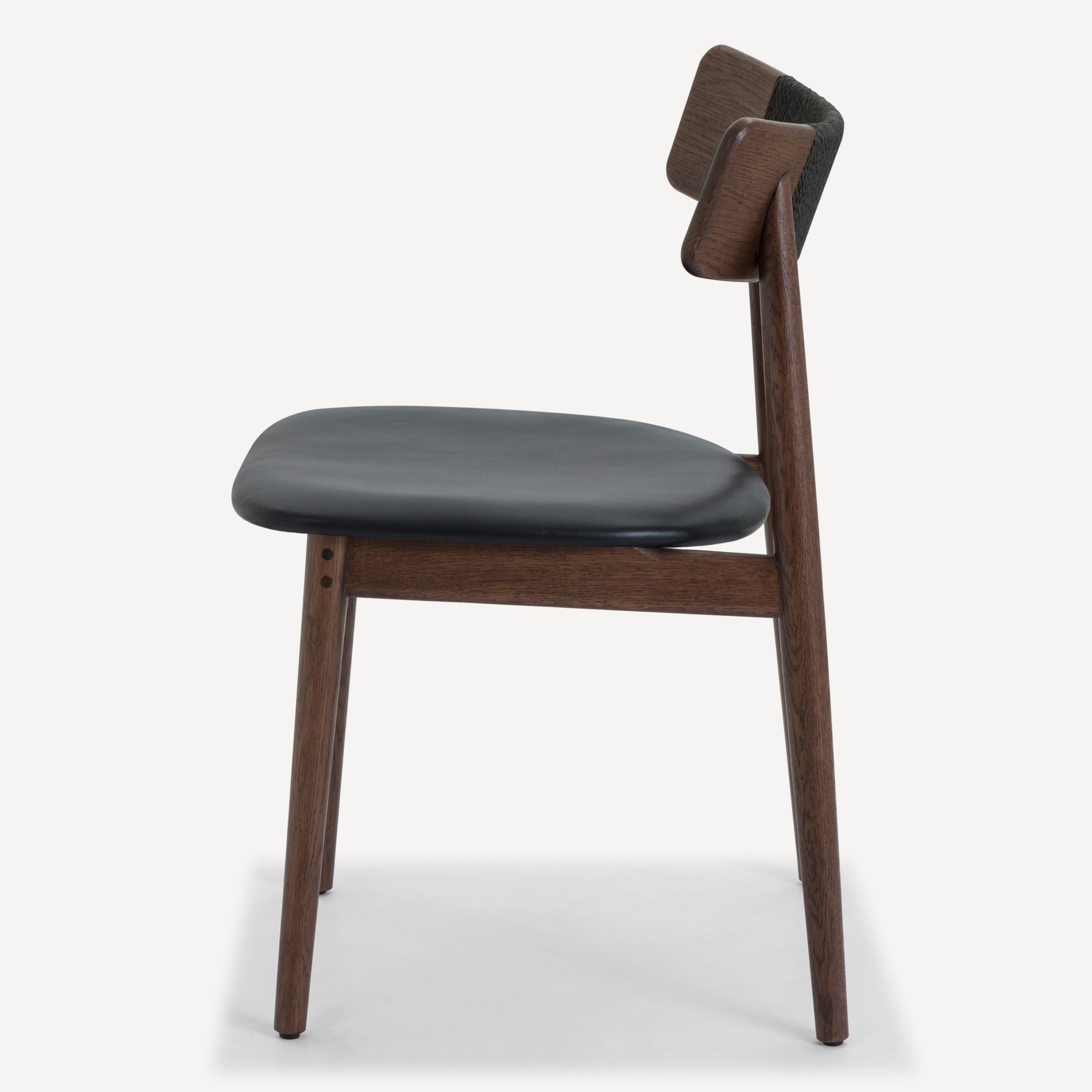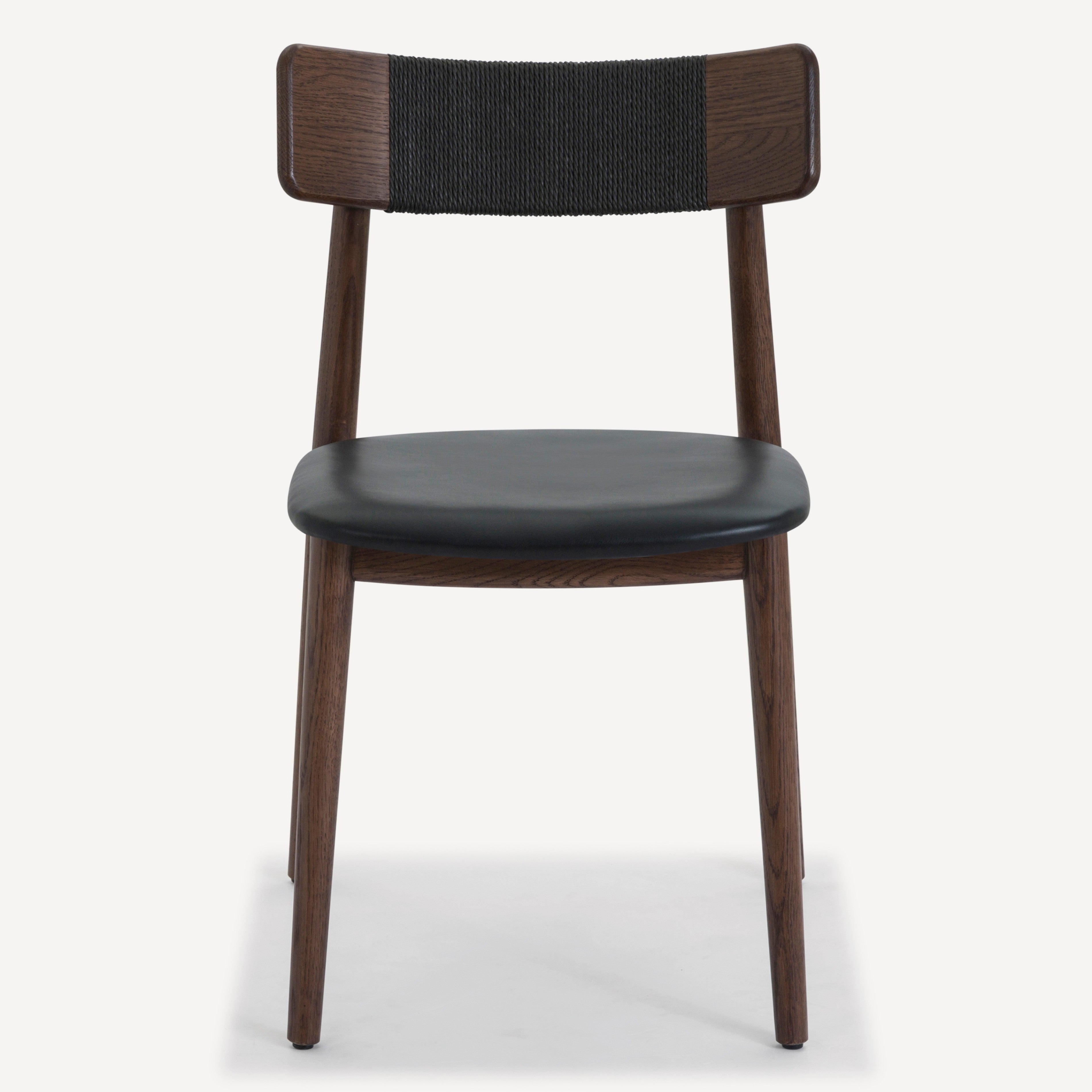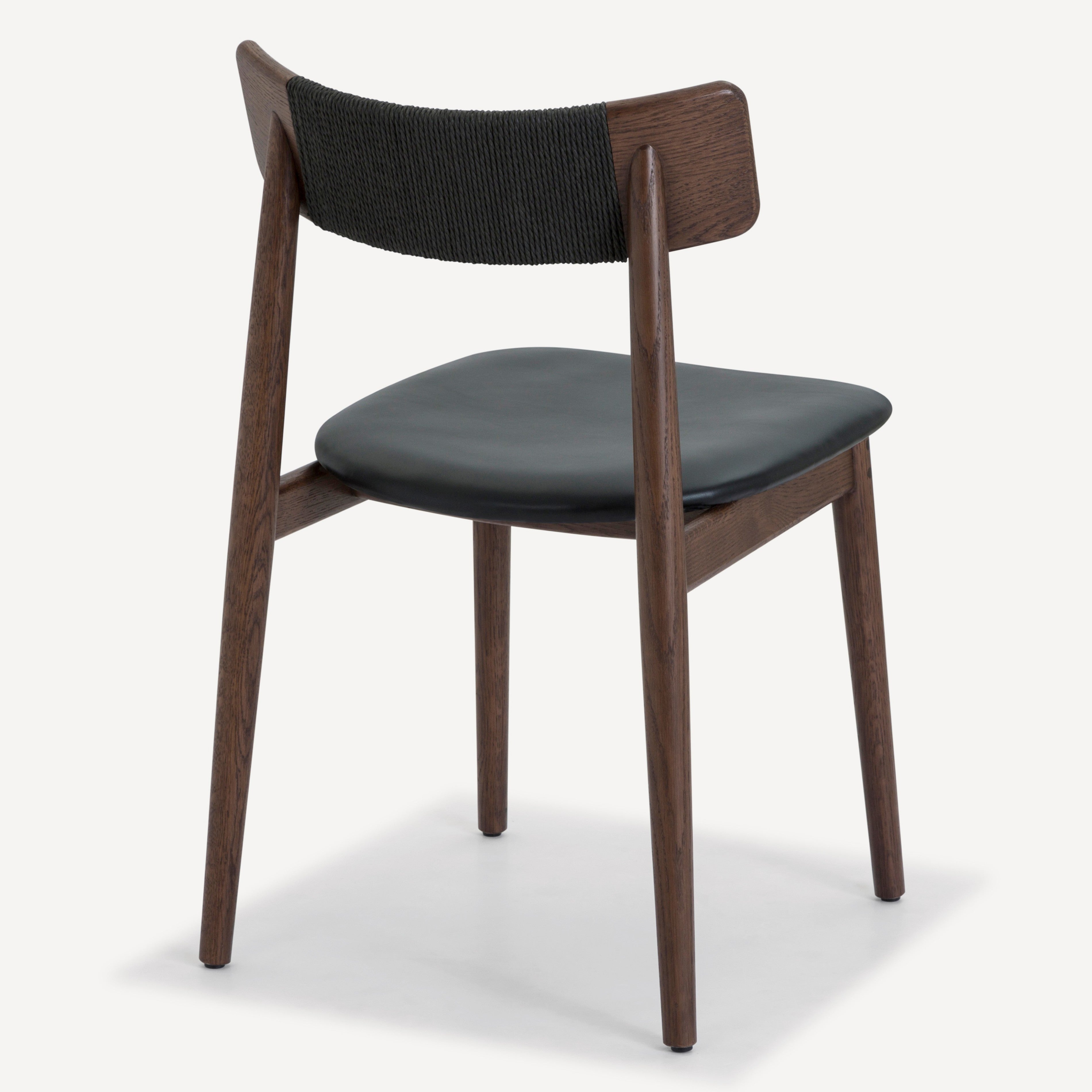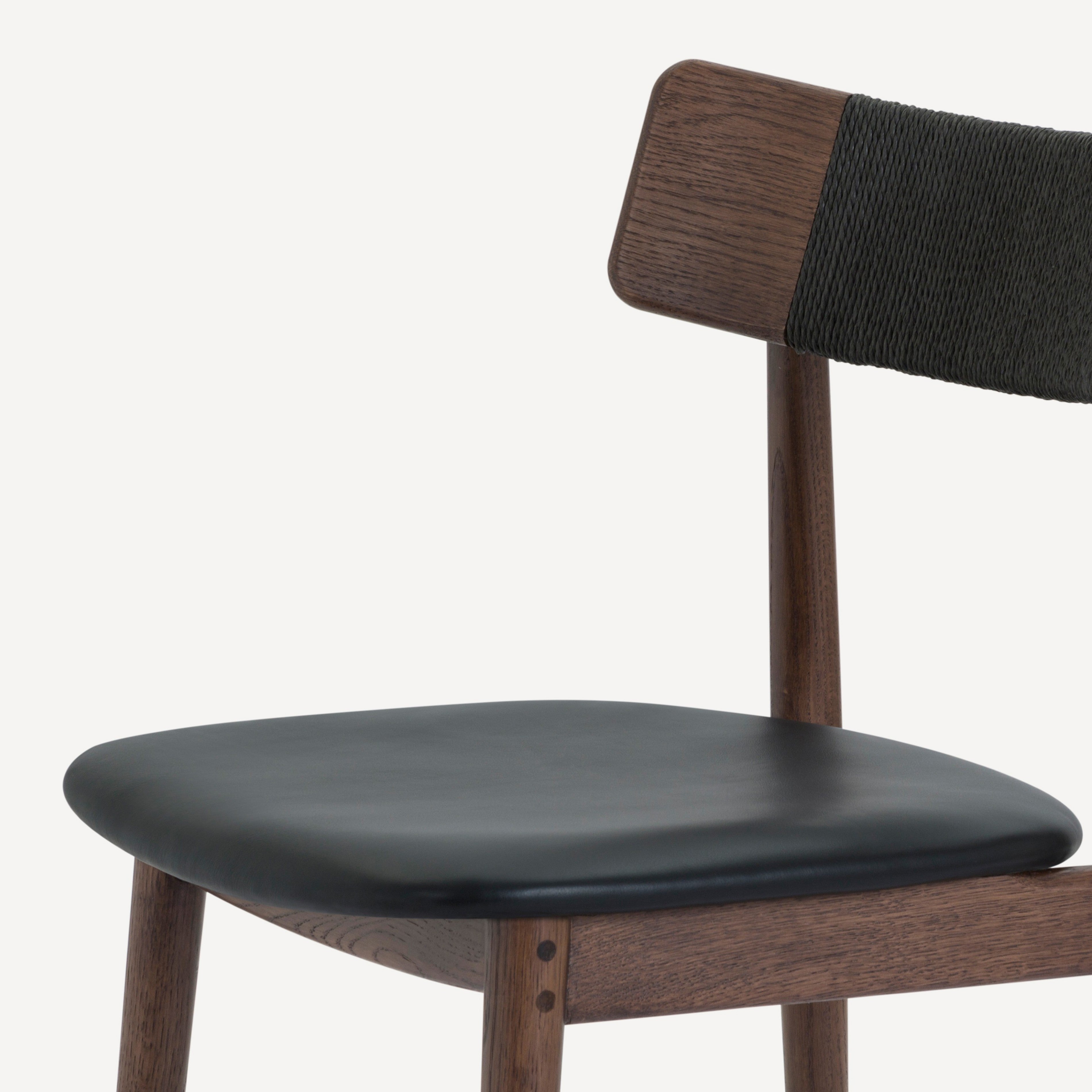 Inspired by the honest expression of material found in Scandinavian design, the Converse chair is at once simple and elegant. This versatile chair features a solid, FSC certified Oak frame that supports an upholstered leather seat. The softly curving back rest is complemented by an intricately woven Danish paper cord detail.