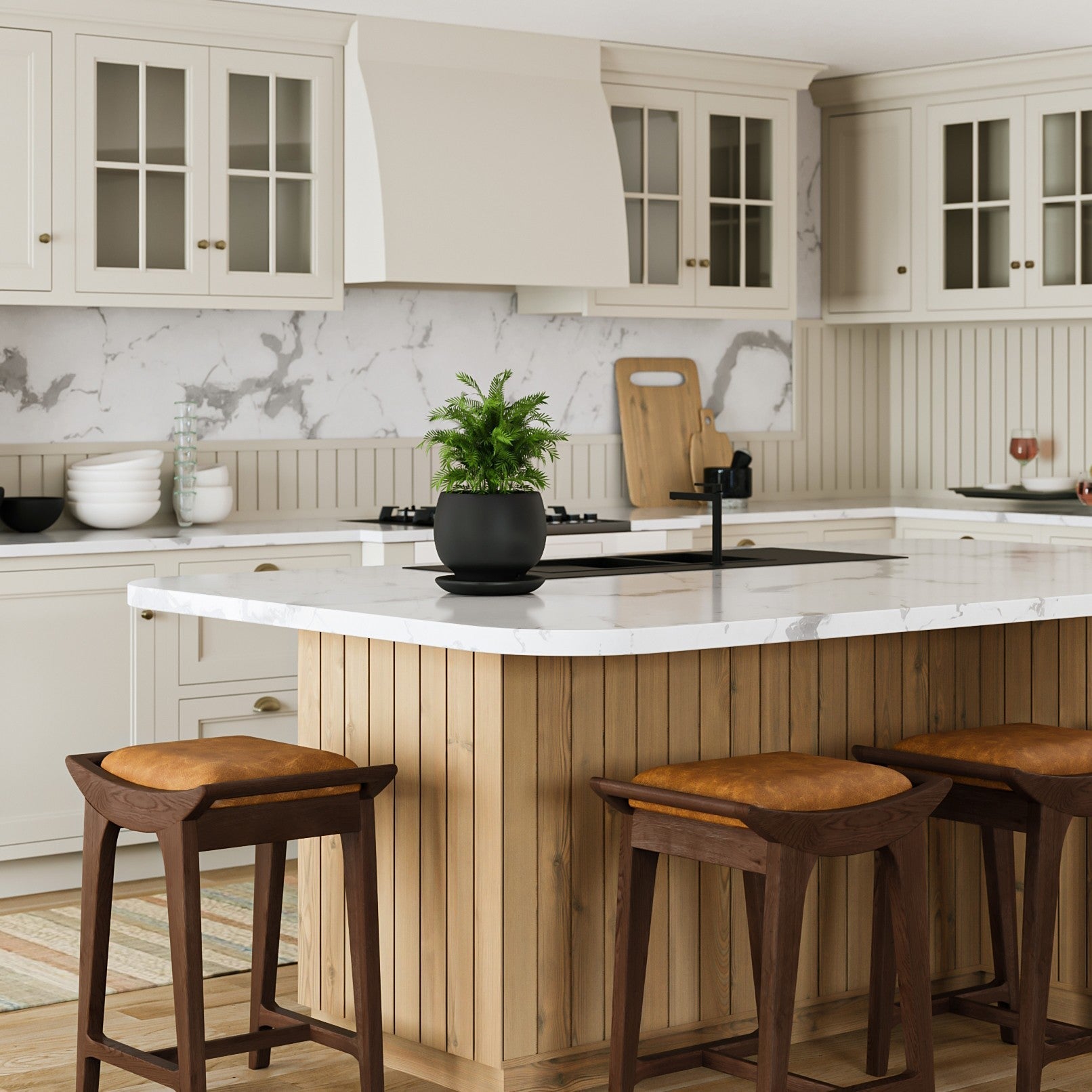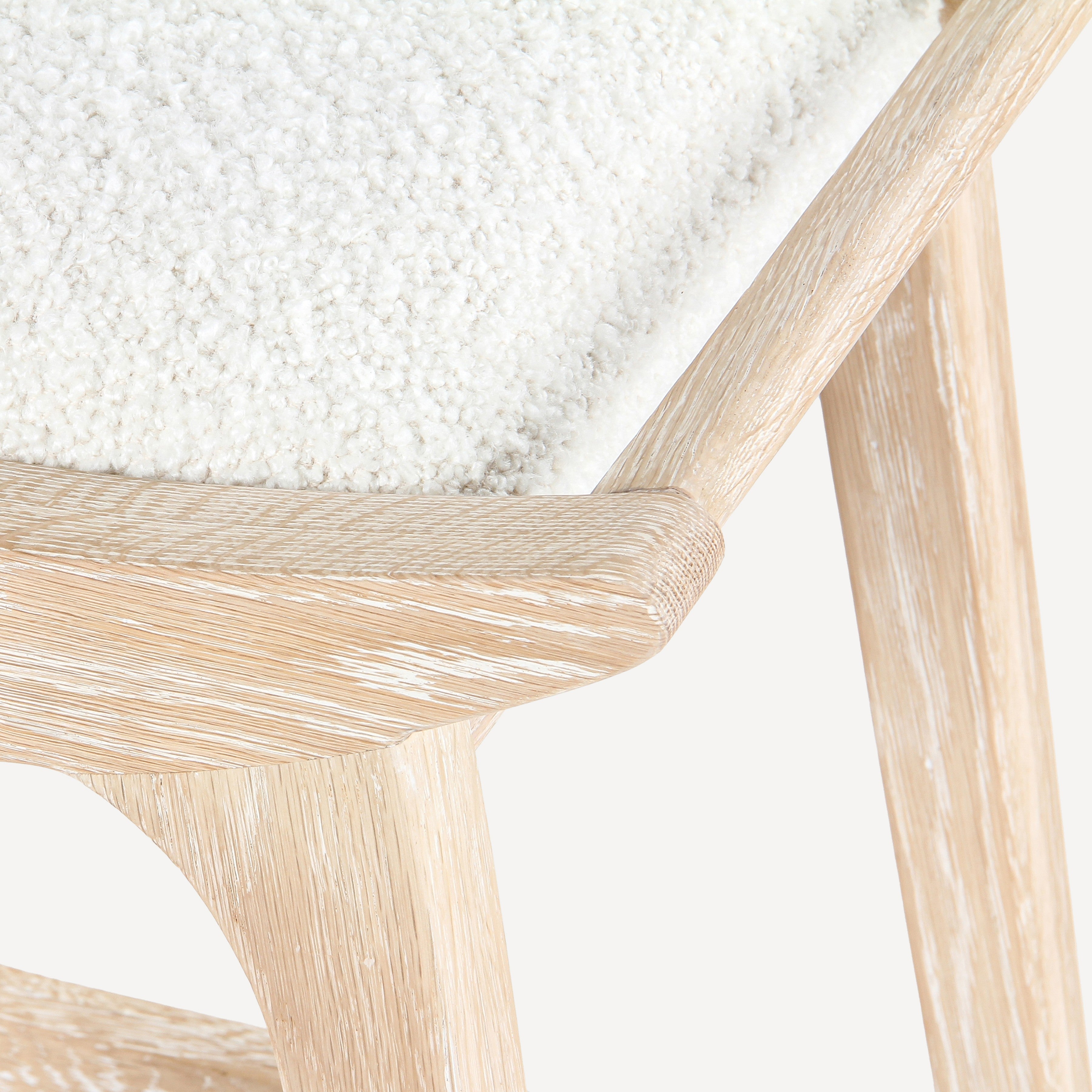 With refined proportions and a warm mix of materials, the Porter Counter Stool is an elegant addition to any entertaining space. A solid, FSC certified Oak leg frame with integrated handles gracefully supports a fully upholstered seat cushion, available in leather and recycled performance Boucle fabric.