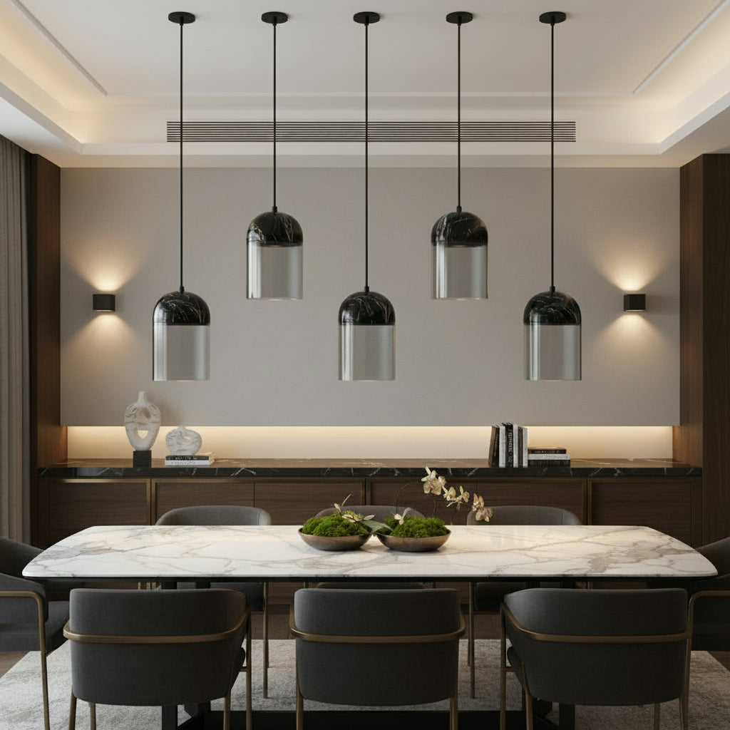 Our Duomo Pendant creates drama through repetition. This captivating design multiplies light and style, making it a perfect focal point over a dining table or kitchen island. Combining contemporary aesthetics with functional illumination, it enhances any interior space with elegance and sophistication.