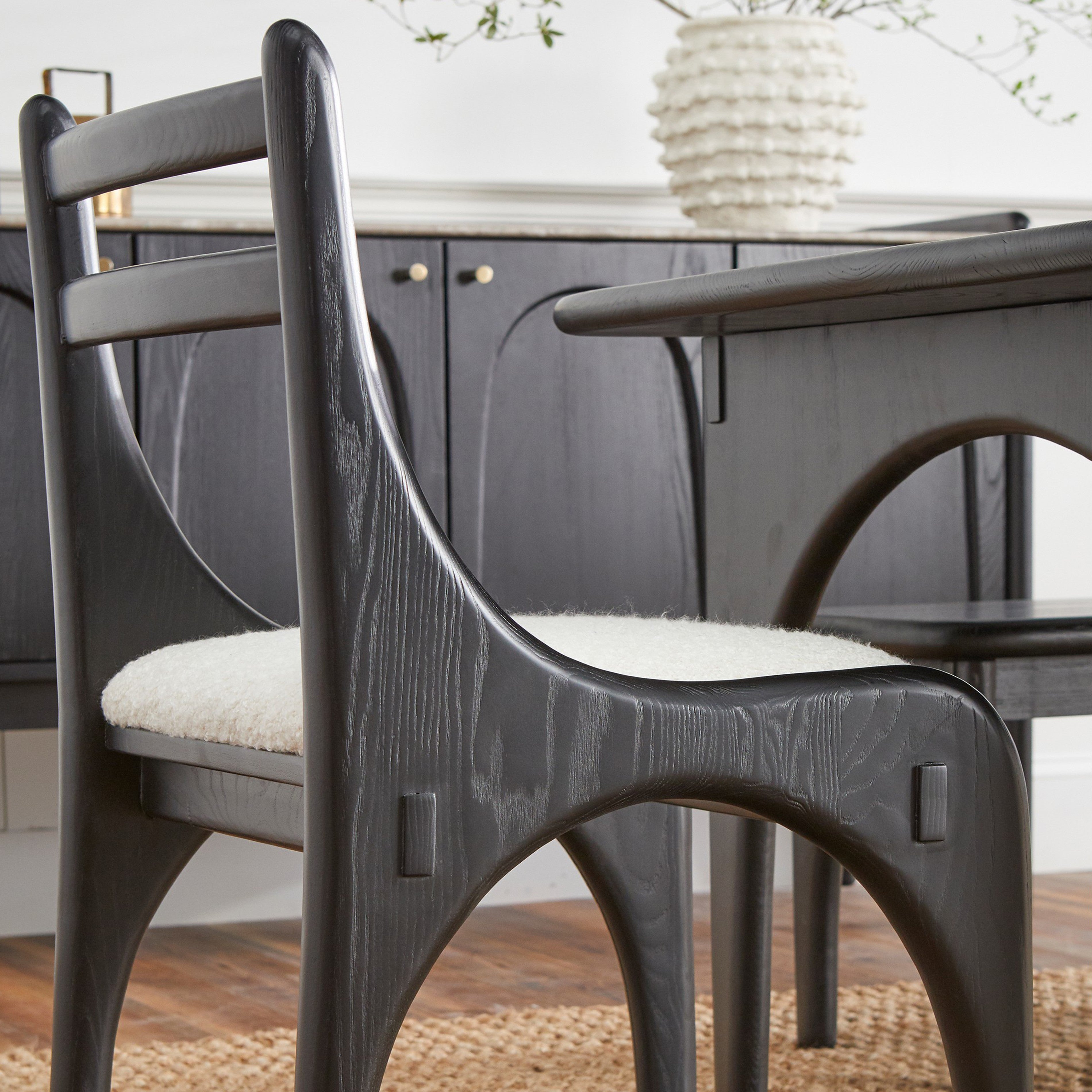 Inspired by arches from architectural landmarks, the Luna chair features dramatic geometry that defines both its structure and aesthetic. The FSC Certified solid Oak frame supports a soft boucle upholstered seat cushion, combining durability with modern elegance for any interior space.