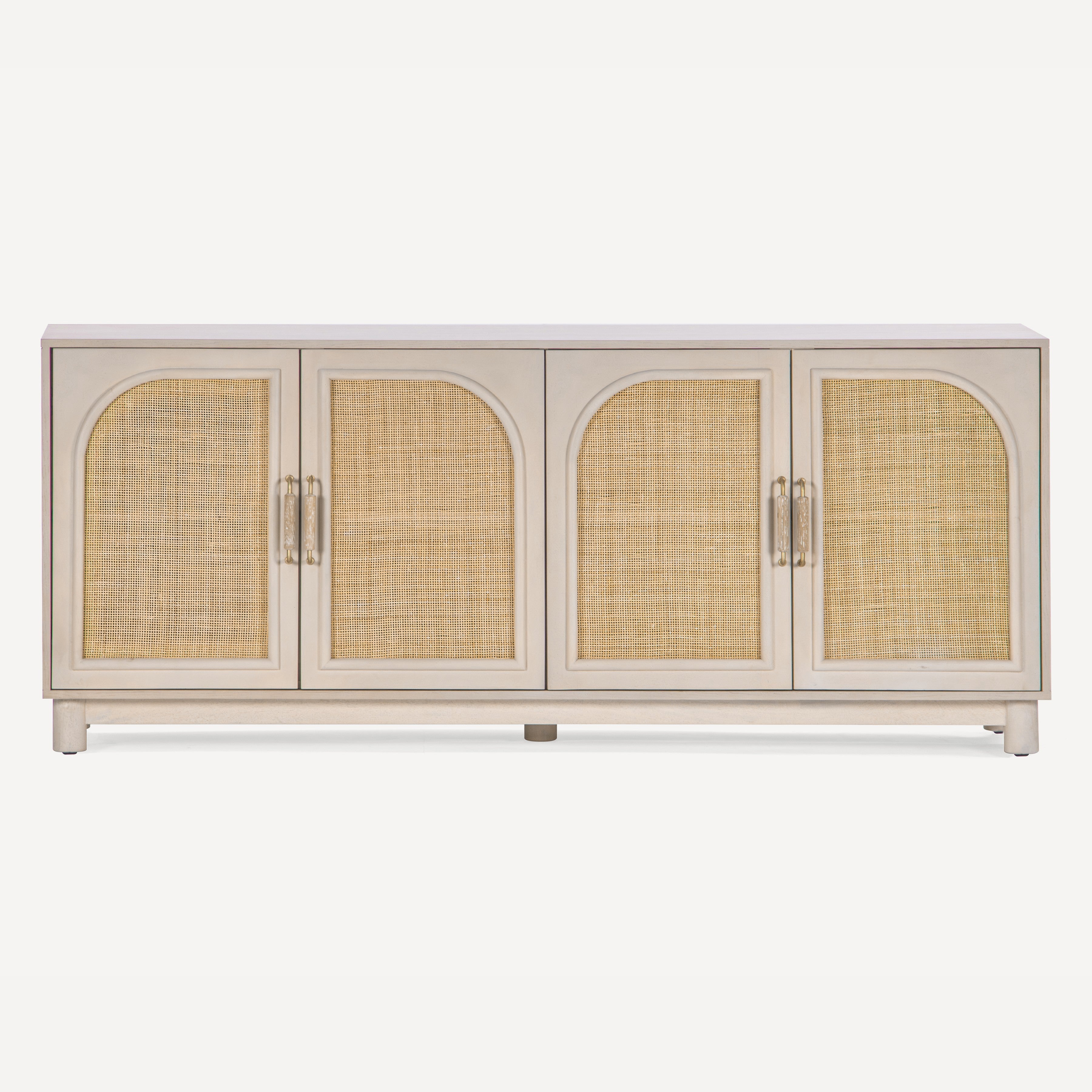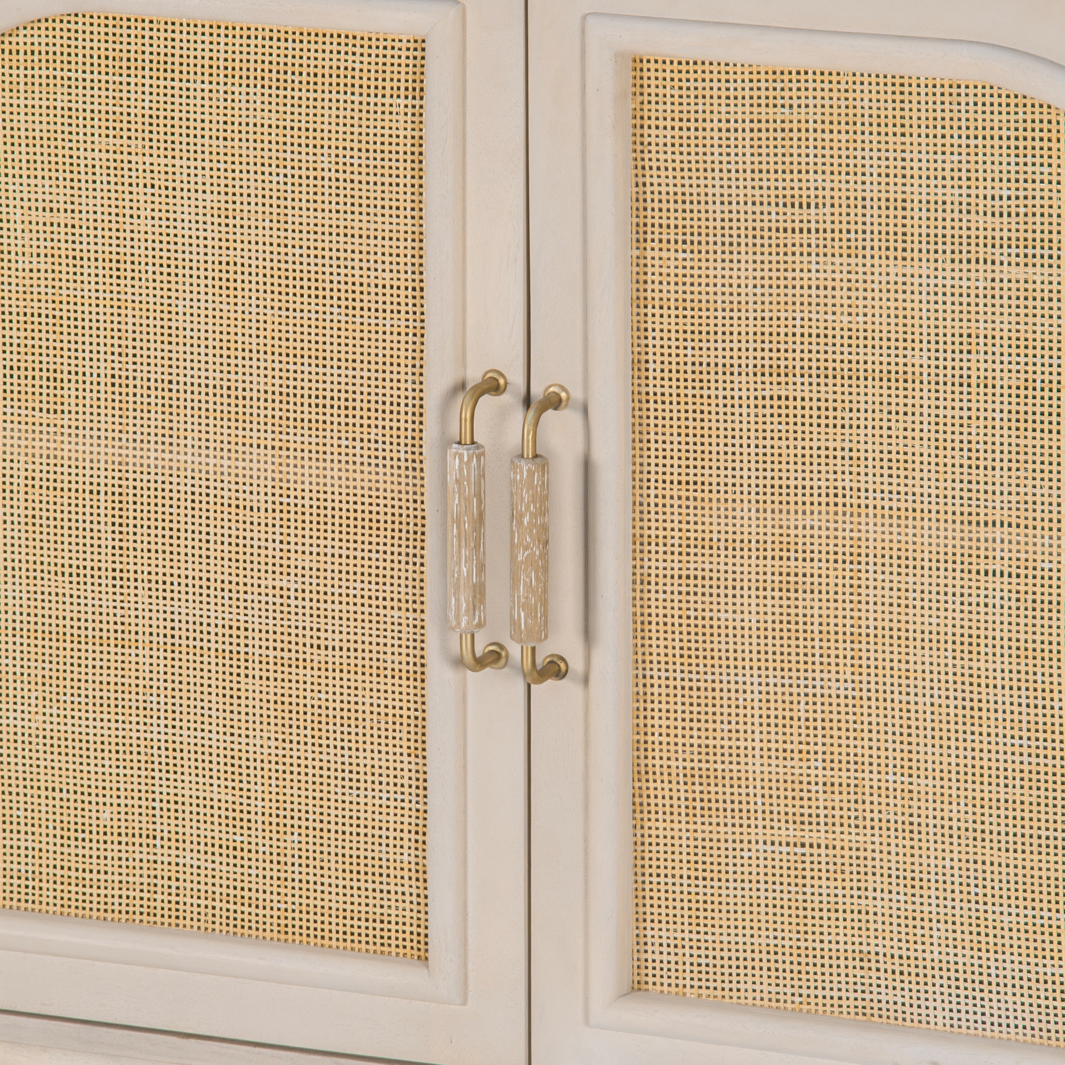 The Grace 72'' Sideboard features rich Oak grain in a warm Vanilla finish with cane doors and handles crafted in brass with cerused Oak. The Grace 72'' sideboard offers ample storage and complements any style with its timeless design.